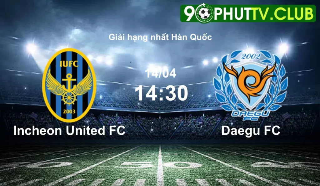 Trực tiếp Incheon United FC vs Daegu FC vào lúc 14:30 14/04/2024