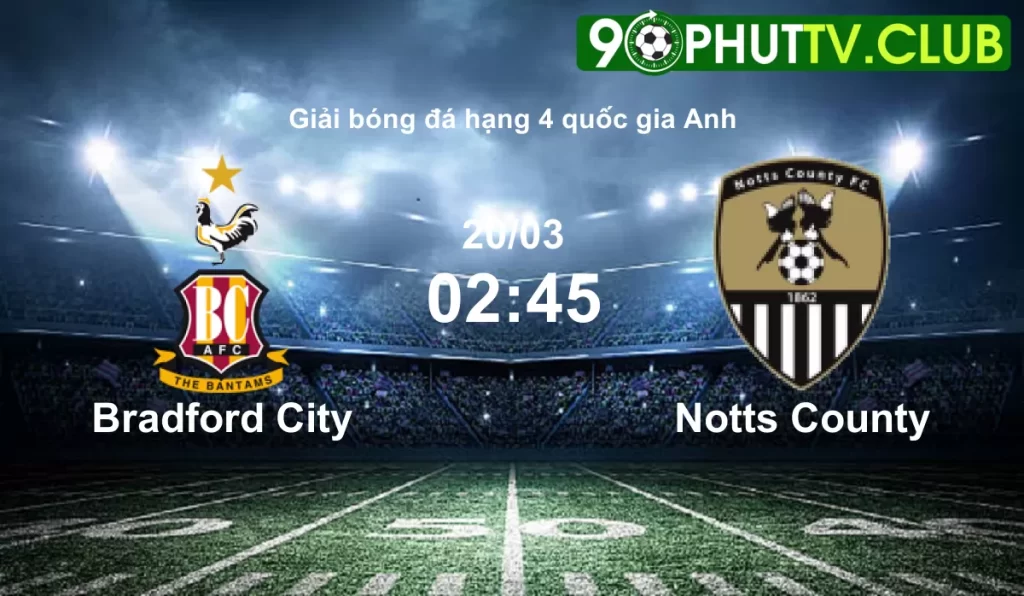 Trực tiếp Bradford City vs Notts County vào lúc 02:45 20/03/2024